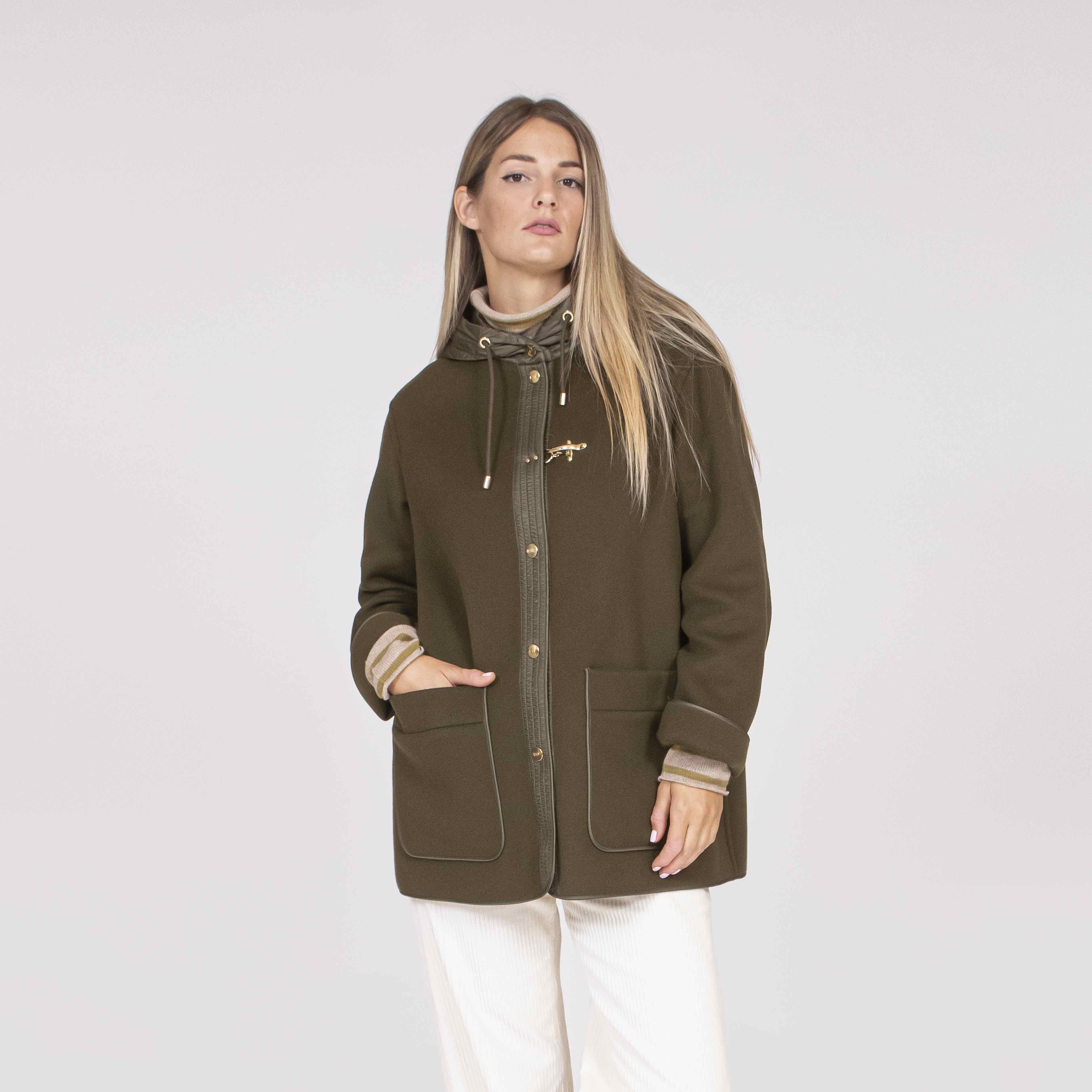 Completa il capo una chiusura con automatici personalizzati e l'iconico gancio Fay.