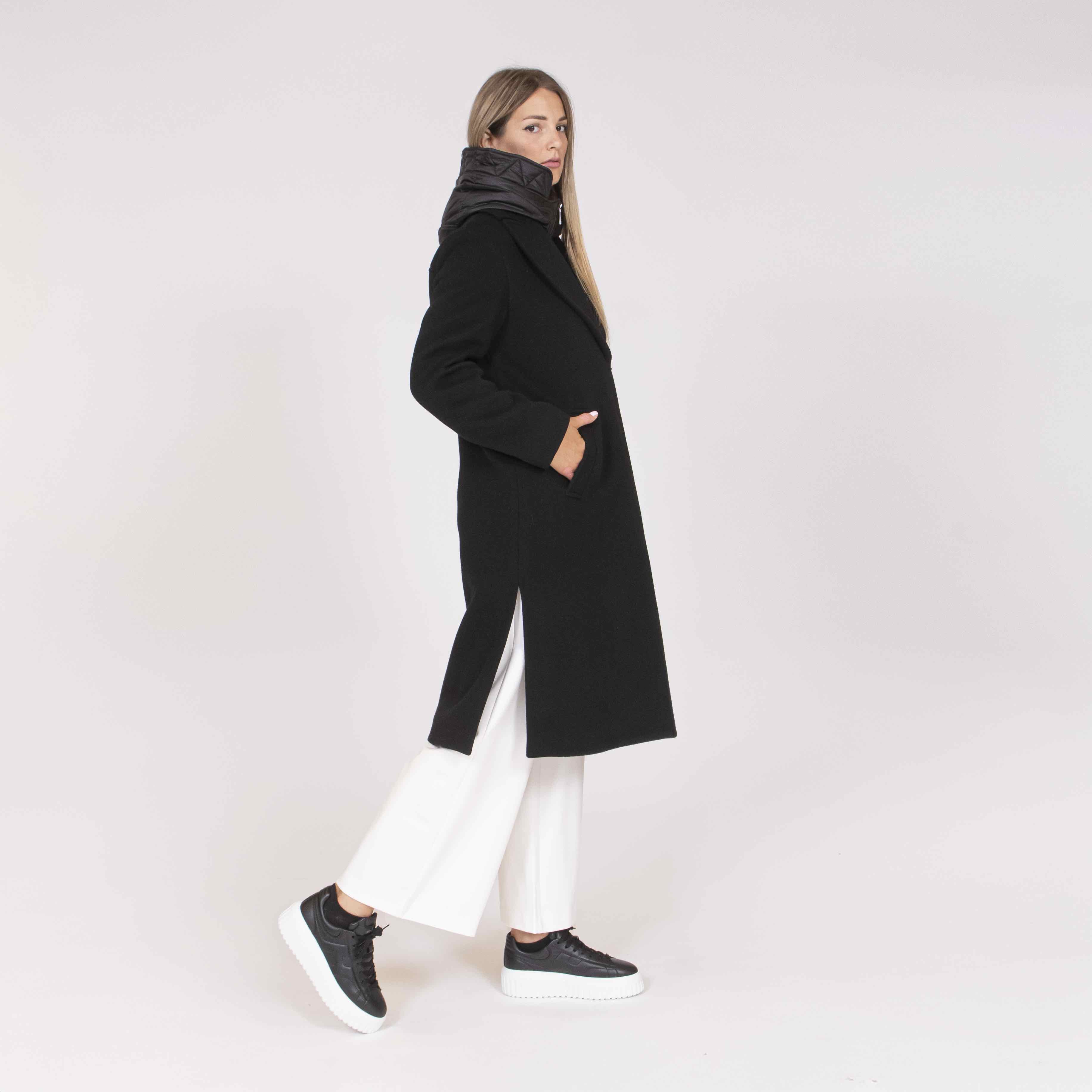 Cappotto double front realizzato con pregiati filati di lana e cashmere.