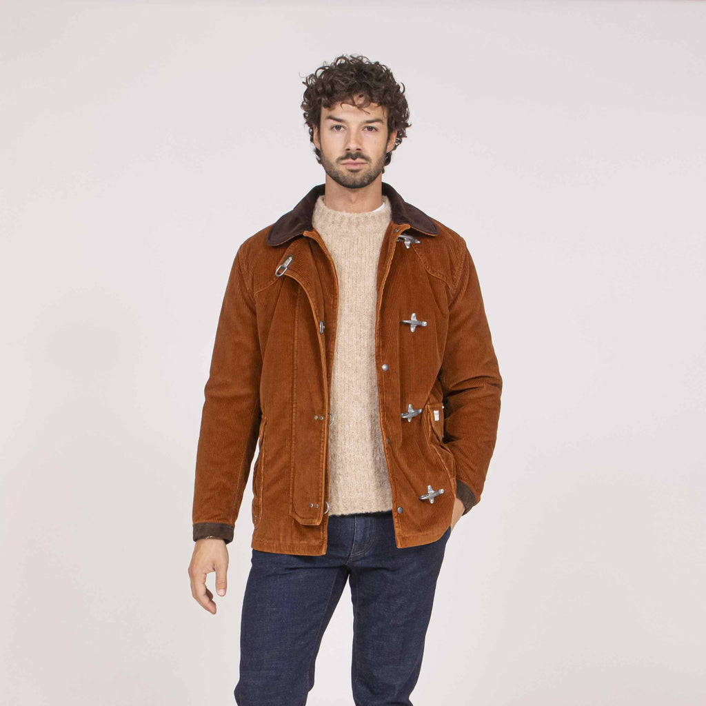 L’iconico 4 Ganci evolve costantemente senza perdere il dna workwear che lo rende un cult dagli anni Ottanta. Ispirato alle divise dei pompieri americani, è caratterizzato dall’inconfondibile chiusura con ganci in metallo, dettagli in crosta e colletto in velluto.