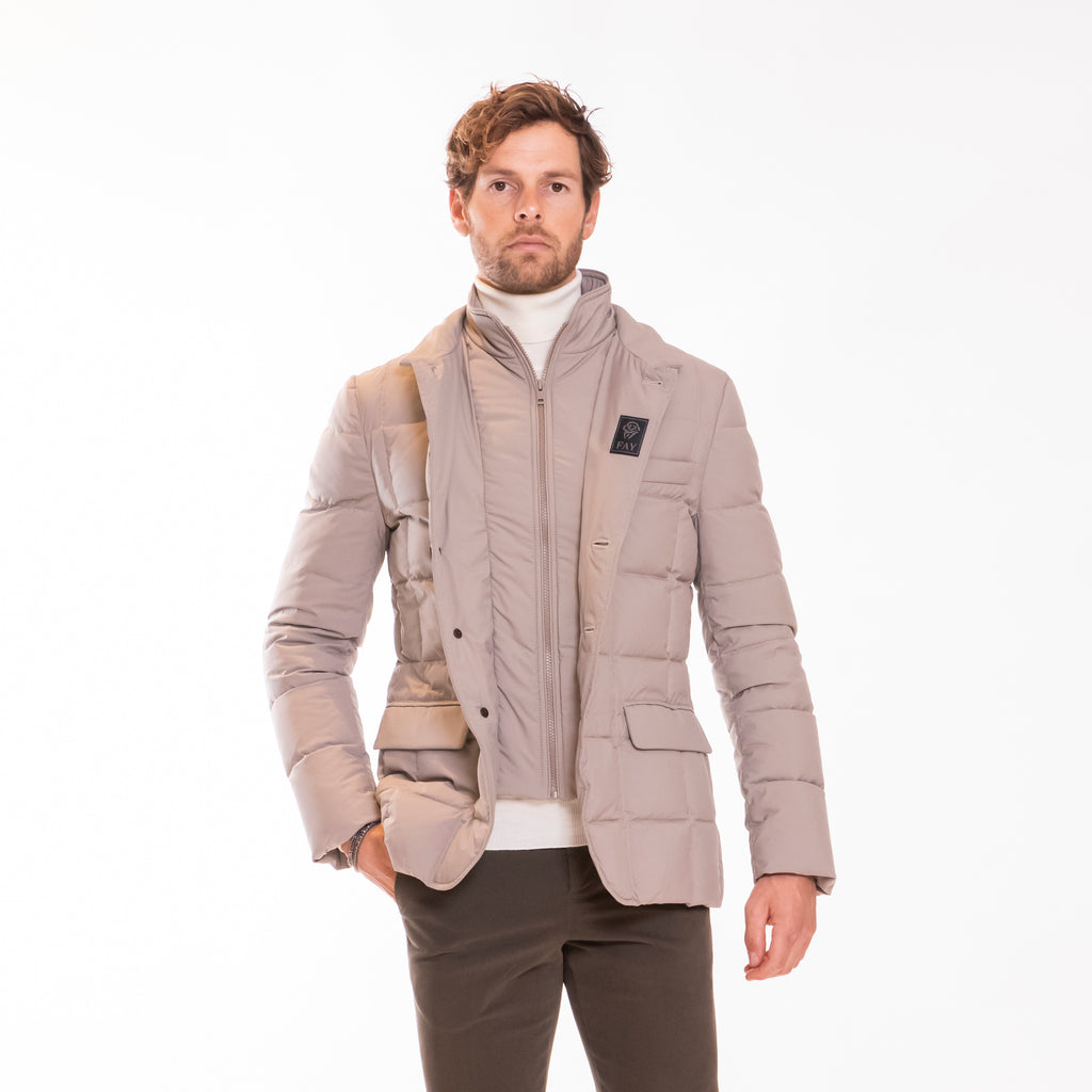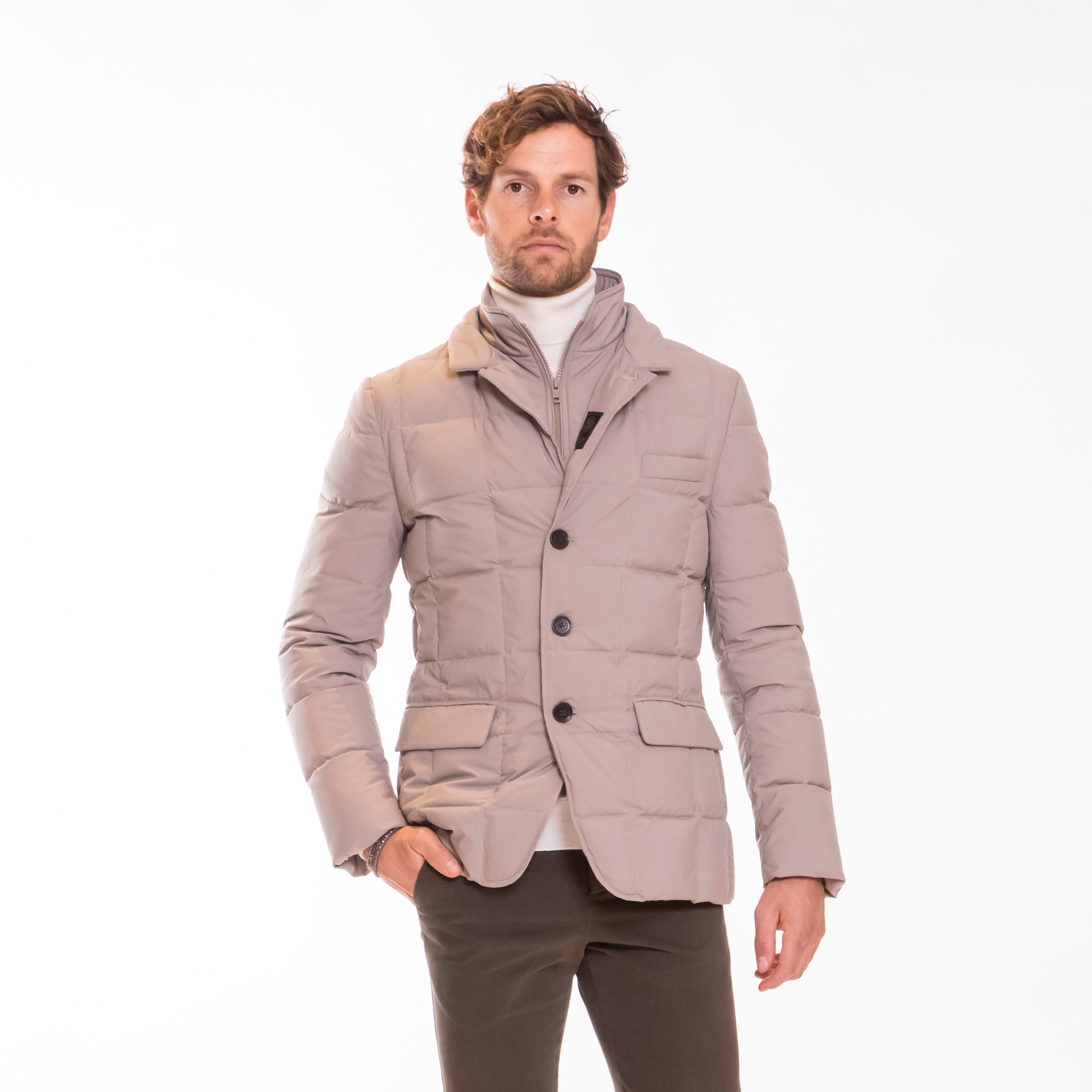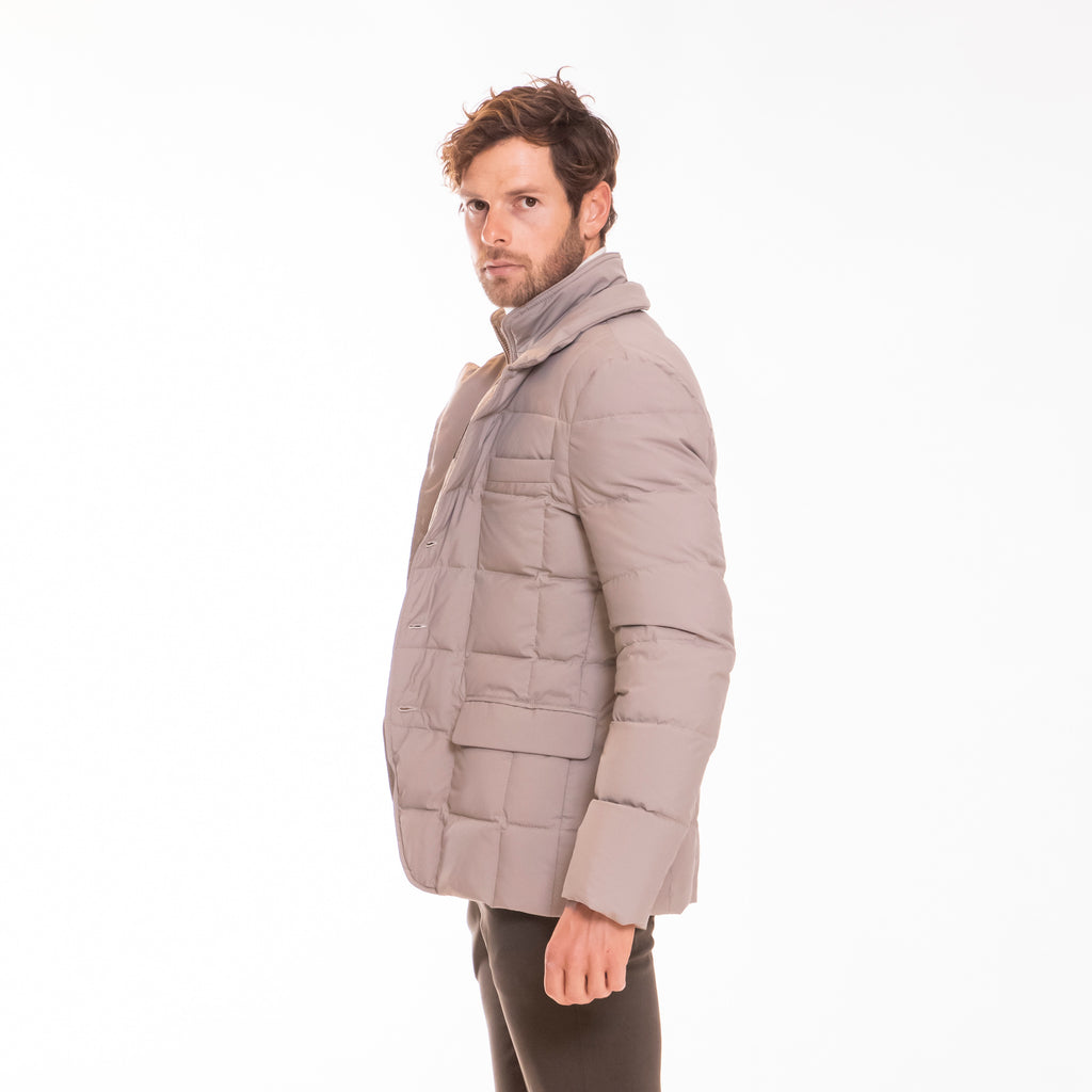 Storico modello double front trapuntato a quadri, questa giacca in piuma combina ispirazione classica e uno spirito urbano e dinamico. Realizzata in canvas con membrana idrorepellente, presenta un taschino pochette e tasche con patta. Dotato di una chiusura con zip nascosta e bottoni personalizzati, è completa da una tasca interna.
