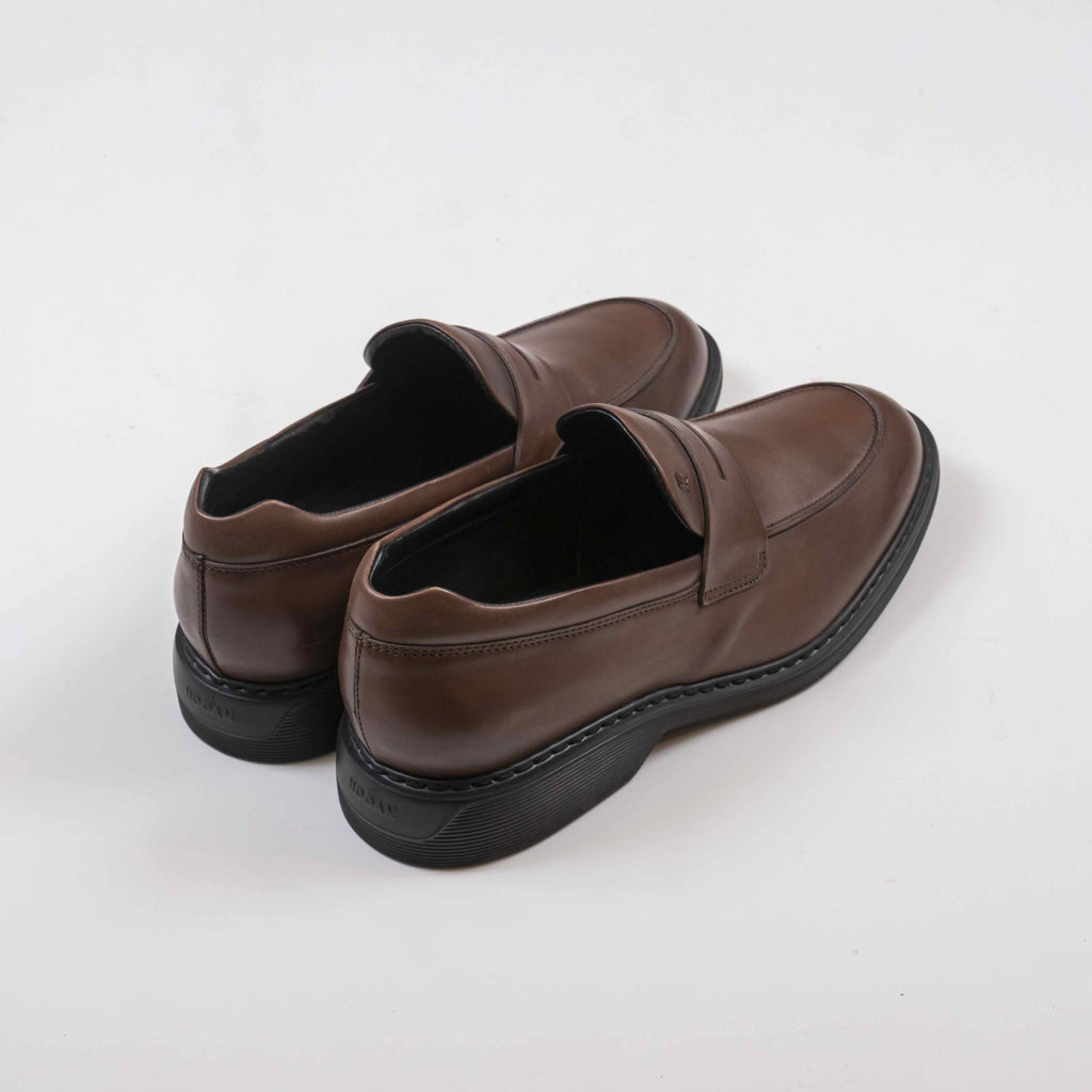 Fusione di stile classico e gusto casual, questo mocassino in pelle spazzolata presenta un'elegante mascherina. Arricchito dal monogramma Hogan impresso, è caratterizzato da un bordo superiore e una linguetta imbottiti, che donano morbidezza alla tomaia senza comprometterne la raffinatezza. Il taglio obliquo del tacco conferisce riconoscibilità e movimento al fondo in gomma, mentre il fussbett in memory foam assicura comfort e performance.