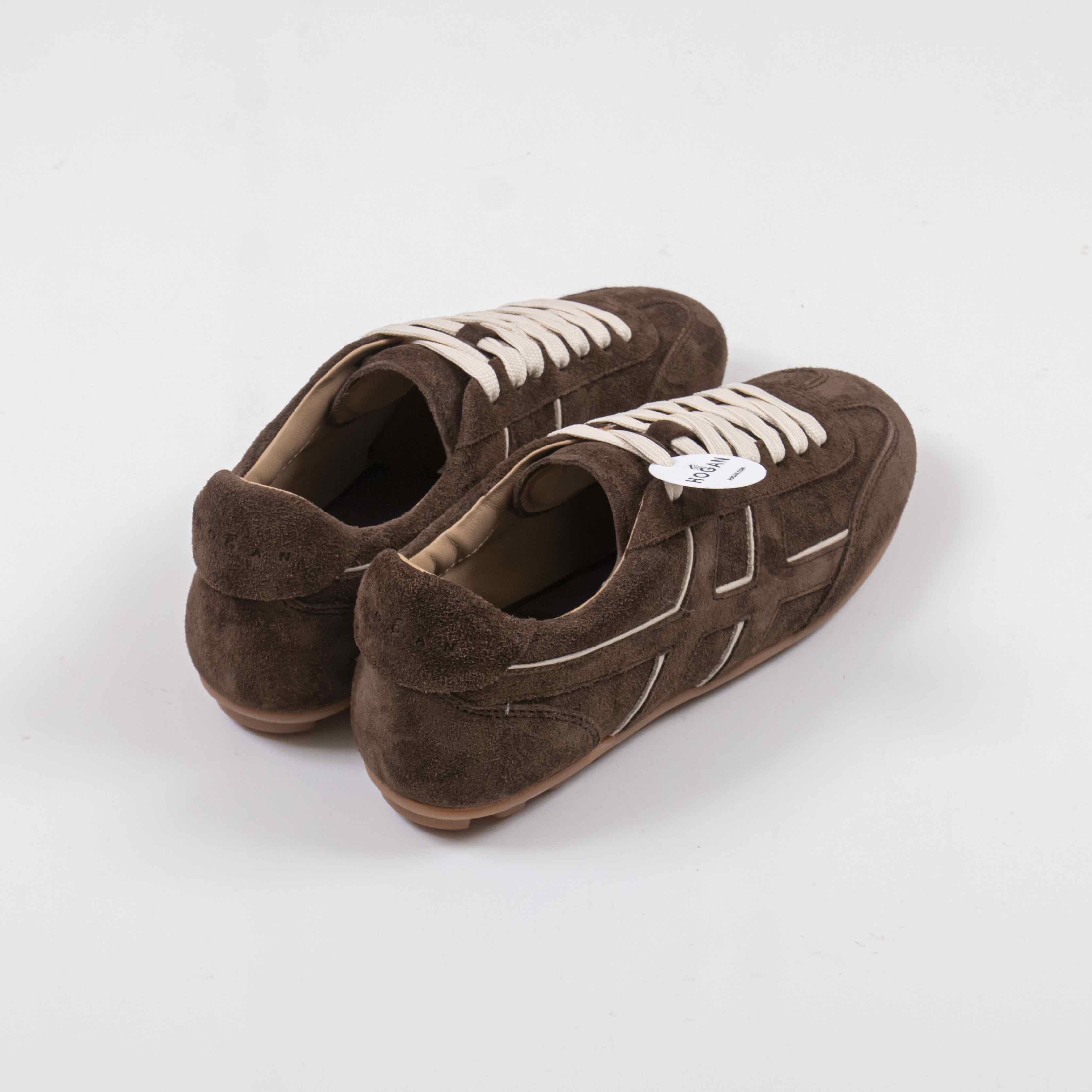 Una sneaker affusolata, super femminile, contrapposta ad una suola sportiva ispirata al calcio: le sneakers Hogan Olympia sono una rivisitazione contemporanea del modello iconico del brand, in un gioco di contrasti. Realizzate in pelle scamosciata con H laterale, si caratterizzano per le impunture dal gusto retrò. Un nuovo modello da donna dal tocco elegante, completato da una morbida soletta in memory foam.
