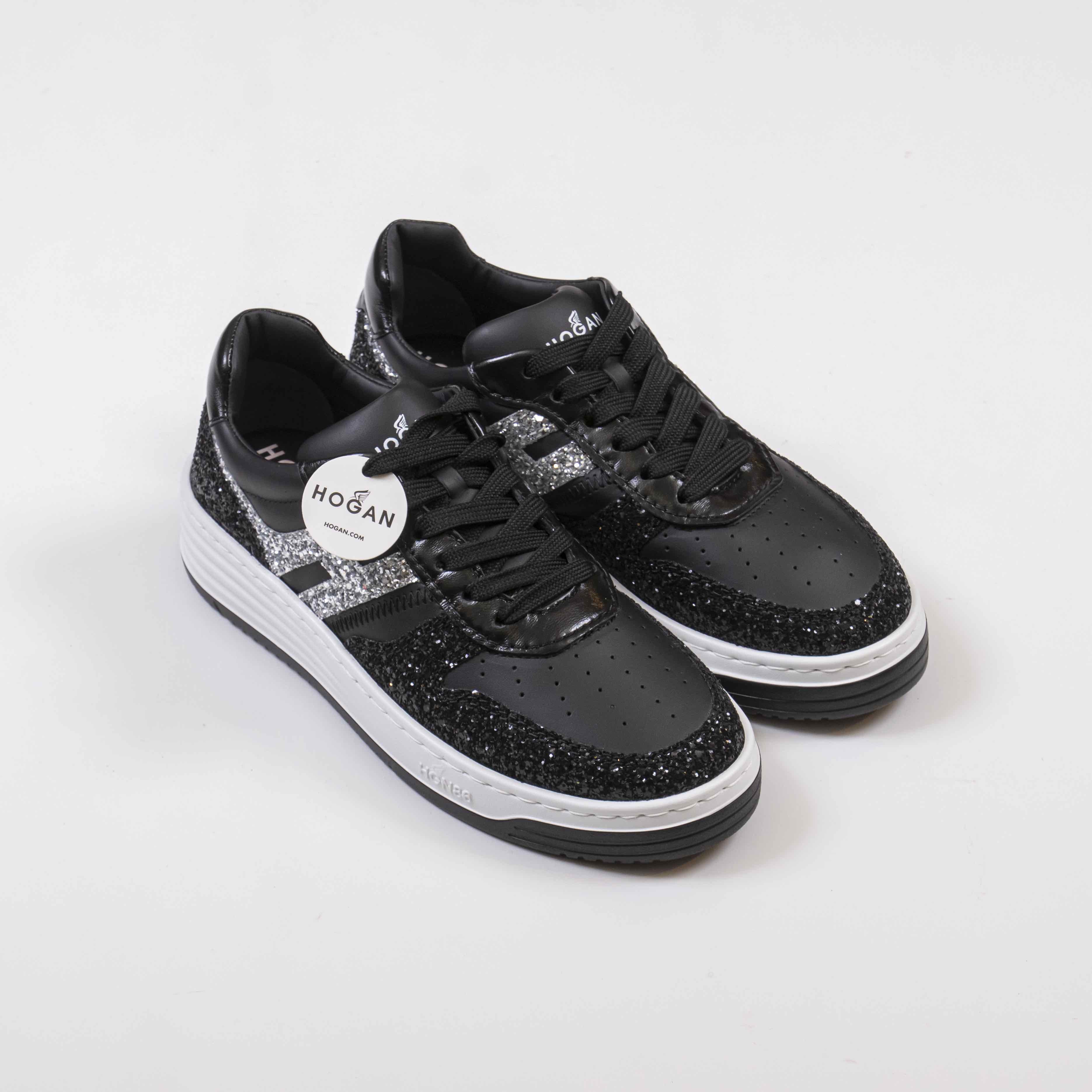 Le sneakers Hogan H630 combinano linee ispirate al mondo del basket e stilemi tipici del brand. La tomaia in denim e pelle liscia è protetta da un'H in pelle scamosciata che gira intorno al tallone. La suola è in EVA extralight, con logo in rilievo sul lato e righe sfumate che reinterpretano le iconiche scanalature Rebel. Must-have del guardaroba contemporaneo, questo modello dinamico è completato da un fussbett in memory foam che assicura morbidezza e ammortizzazione.