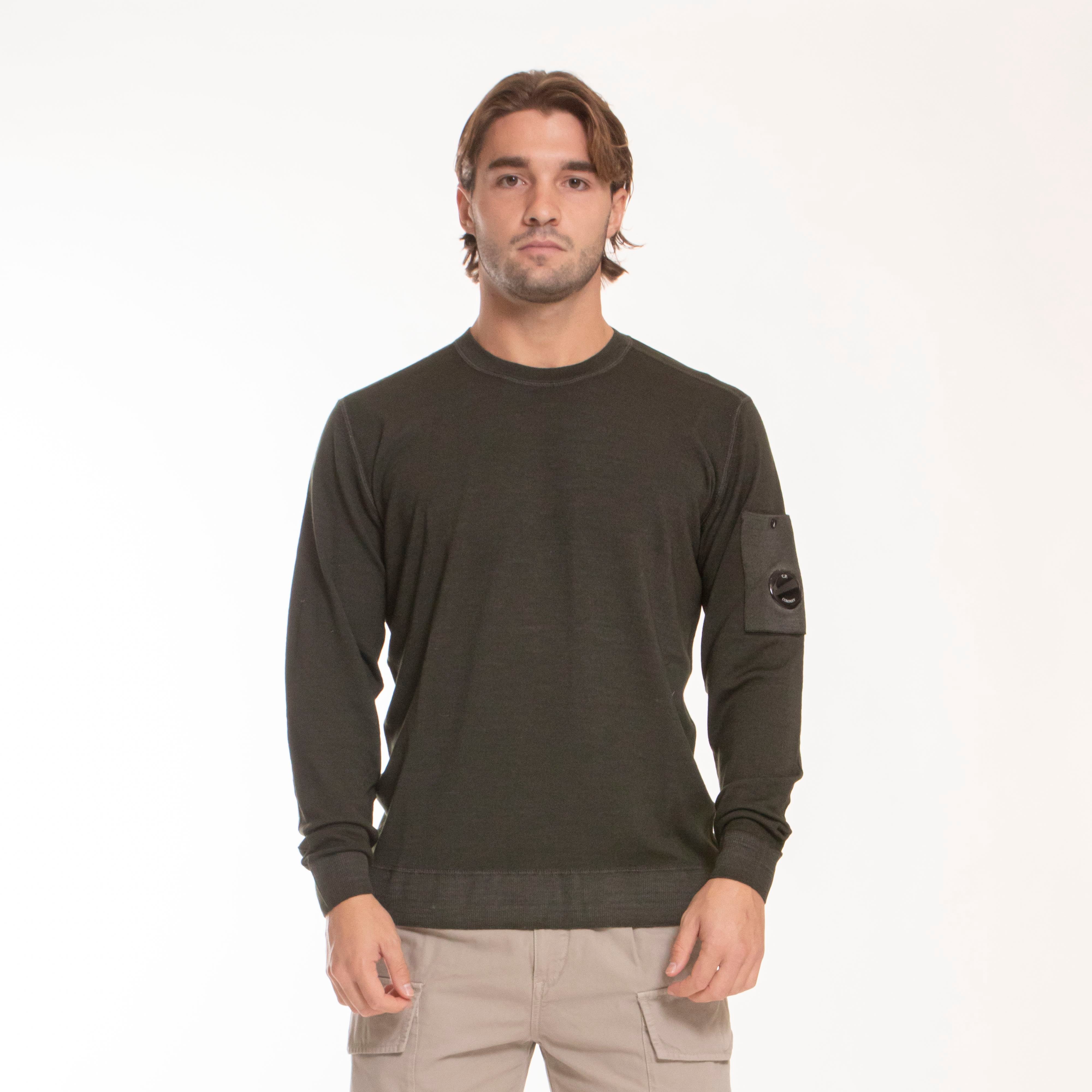 C.P. COMPANY MERINO WOOL FAST DYED CREW NECK KNIT LEAF