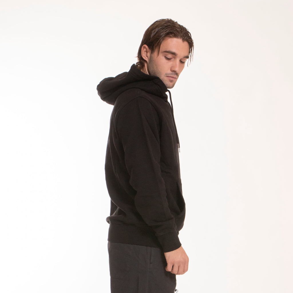 Felpa con cappuccio realizzata in fleece a trama diagonale smerigliato e garzato. Il processo di tintura Resist Dyed crea un effetto irregolare, mettendo in evidenza le cuciture dei capi.