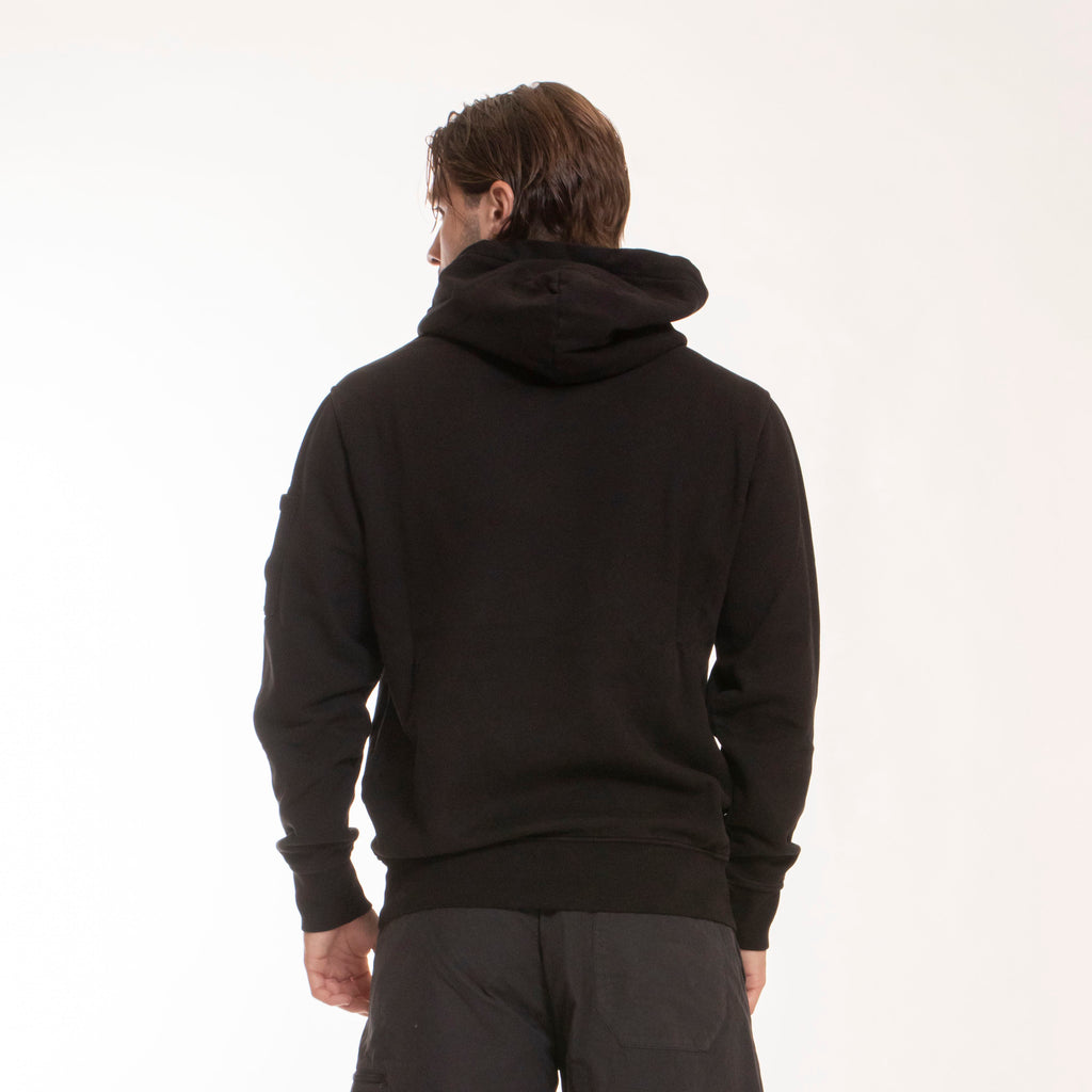C.P. COMPANY BRUSHED AND EMERIZED DIAGONAL FLEECE LENS HODDED SWEATSHIRT BLACK