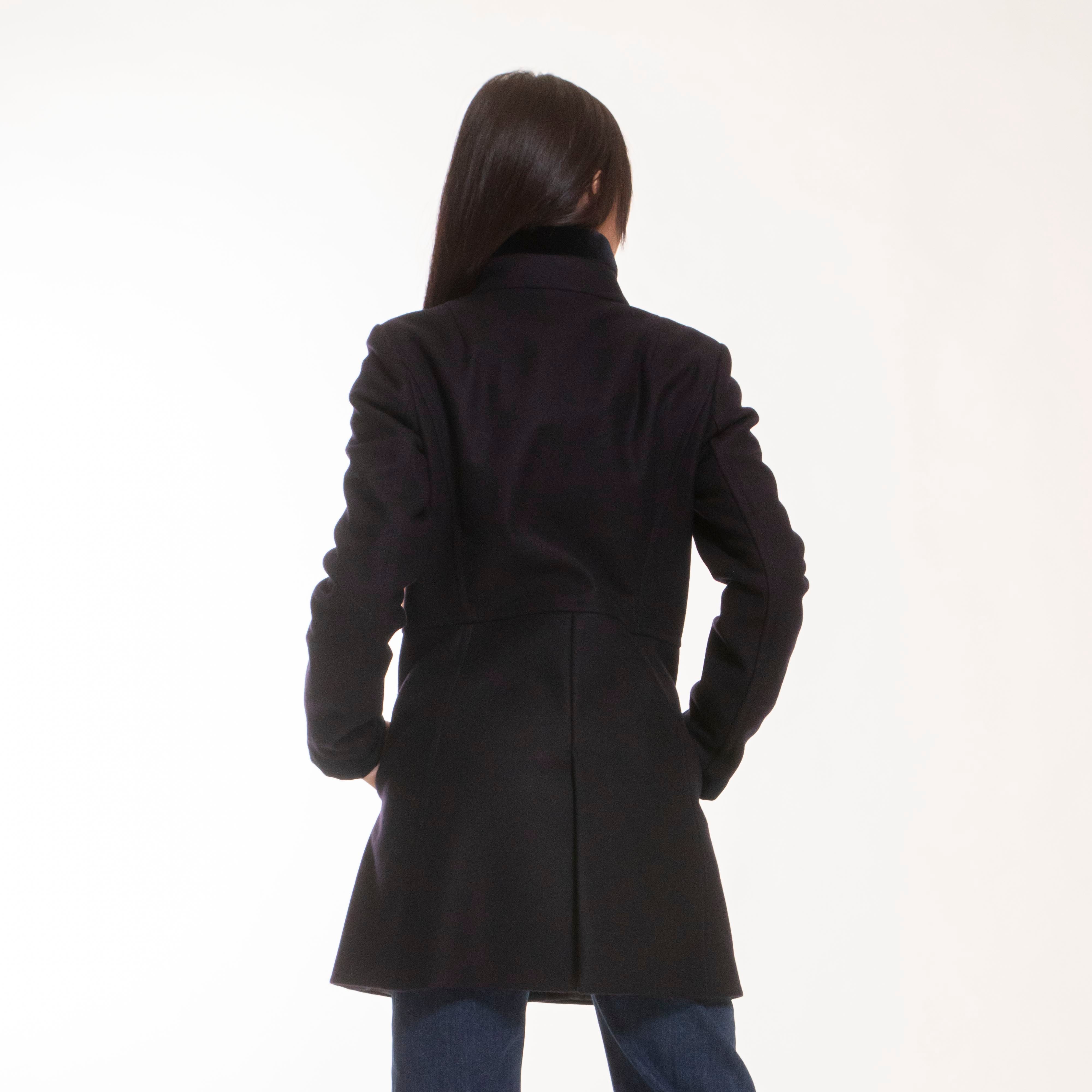 Realizzato in soffice panno misto lana, con tasche a filo, presenta un'etichetta interna con il nome del capo.