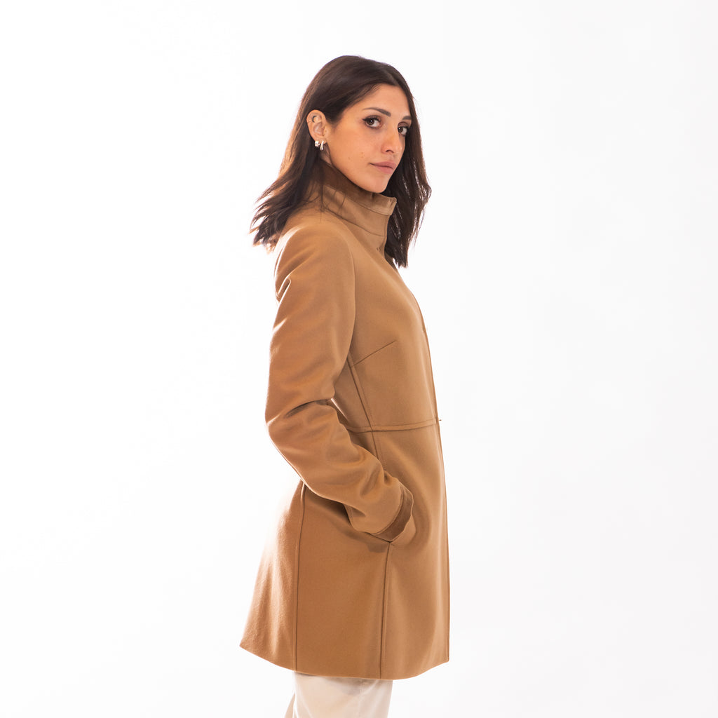 Caratterizzato da un fascino intramontabile, il cappotto Virginia si distingue al primo sguardo per l'iconica chiusura a tre ganci e la silhouette bon ton con tasche a filo. Questa elegante versione in panno misto lana è rifinita con profili in velluto e arricchita da un'etichetta interna col nome del capo.