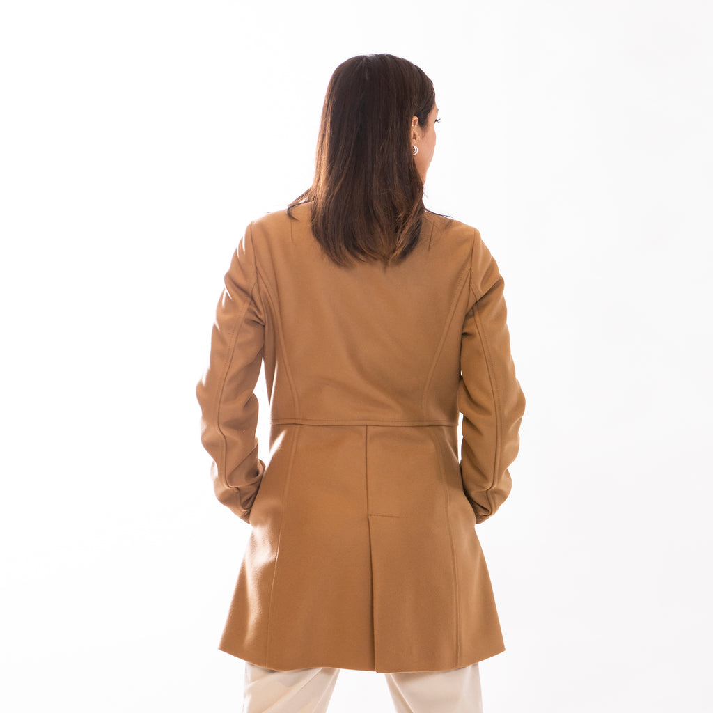 • Composizione capo: 80% lana vergine, 20% poliammide, fodera 62% acetato, 38% poliestere, dettagli 100% cotone