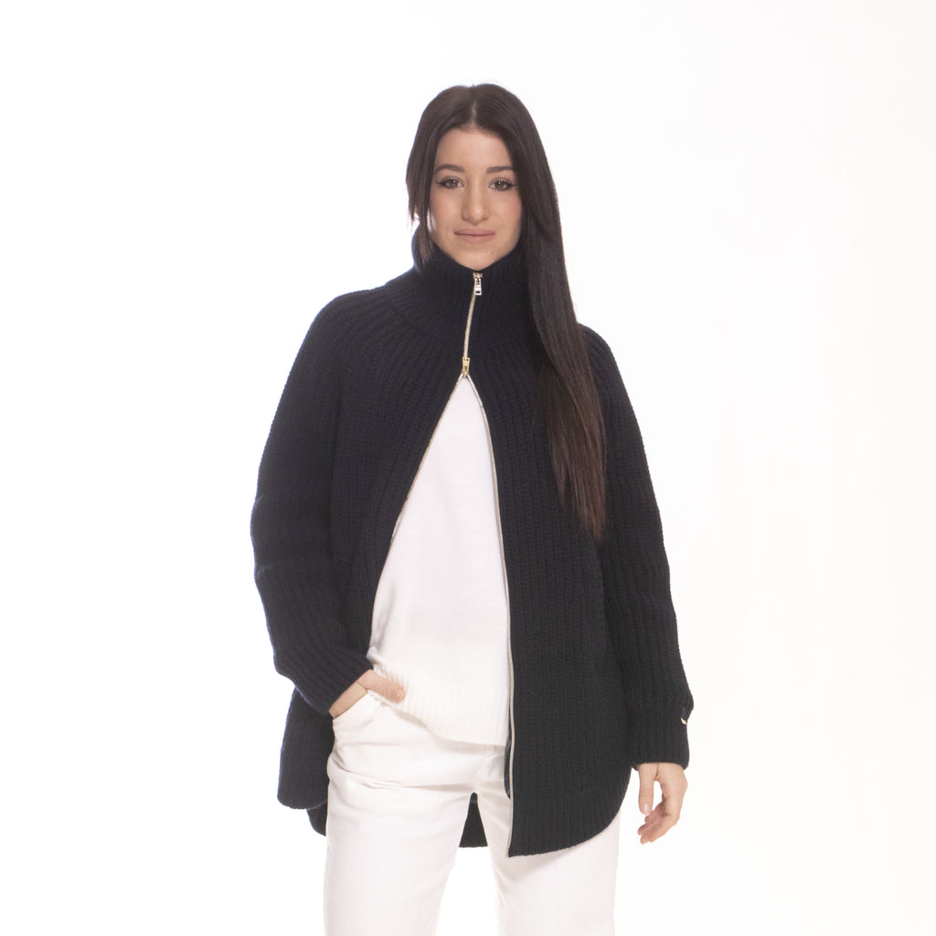 Cardigan in filato di pura lana cardata con lavorazione punto pannocchia.
