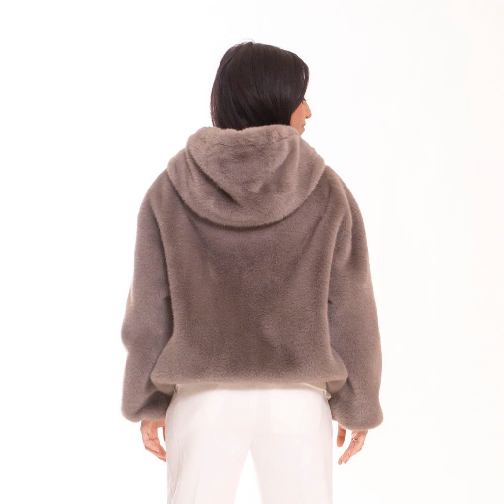 Felpa in pelliccia sintetica effetto visone liscio dalla mano morbida e avvolgente.