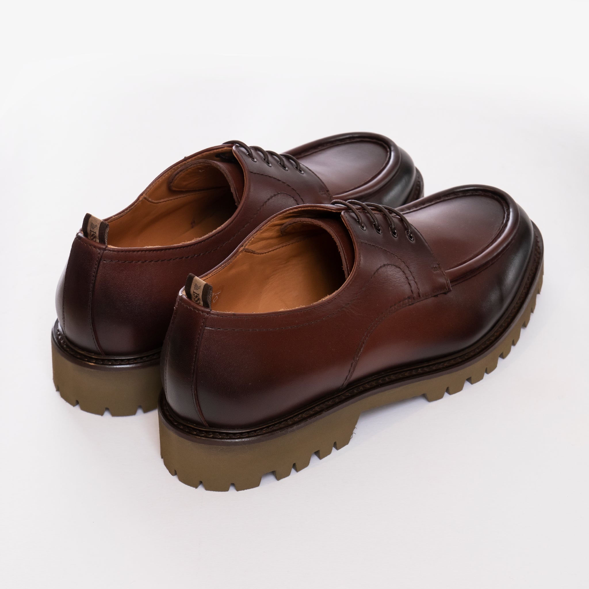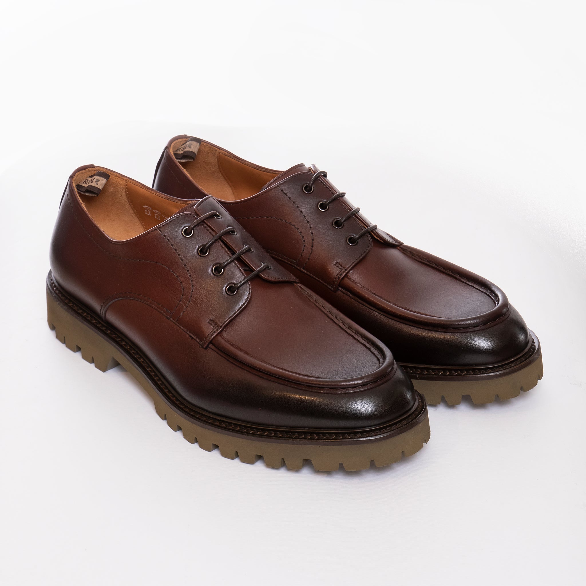 Scarpa suola carro armato allacciato modello paraboot pelle cuoio sfumato.