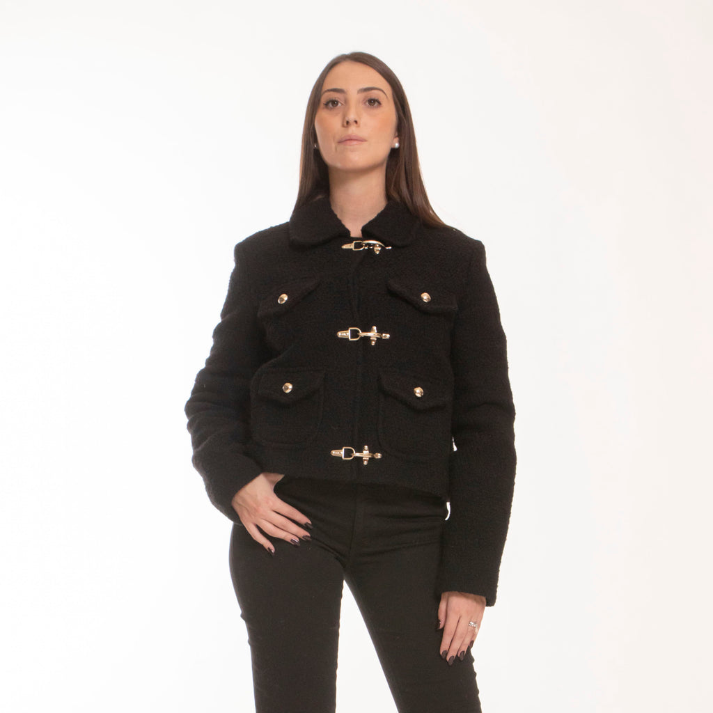 FAY GIACCA 3 GANCI LANA BOUCLE NERA