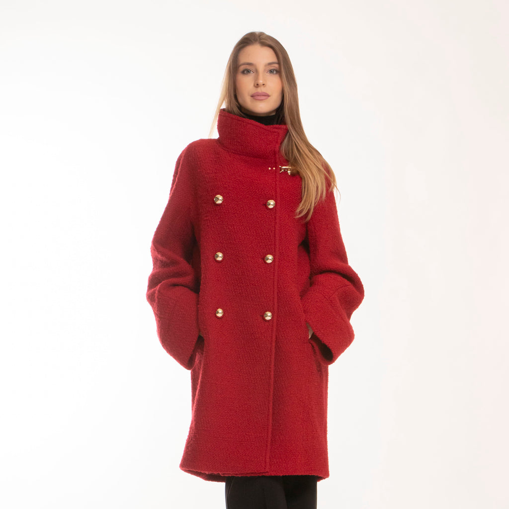 FAY URBAN COAT OVETTO DOPPIOPETTO LANA BOUCLE ROSSO