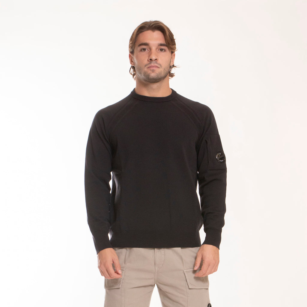 C.P. COMPANY MERINO WOOL FAST DYED CREW NECK LOGO KNITBLACK