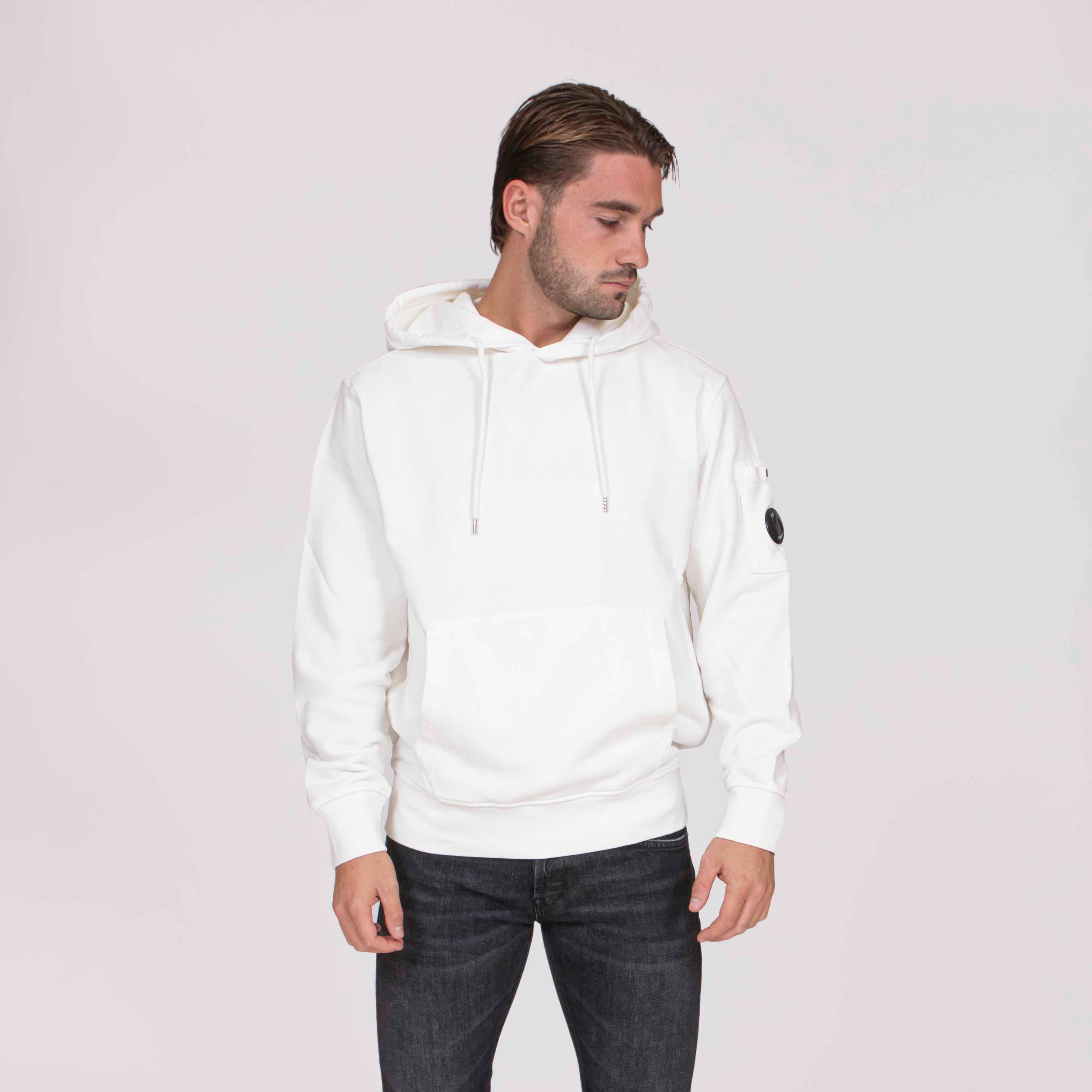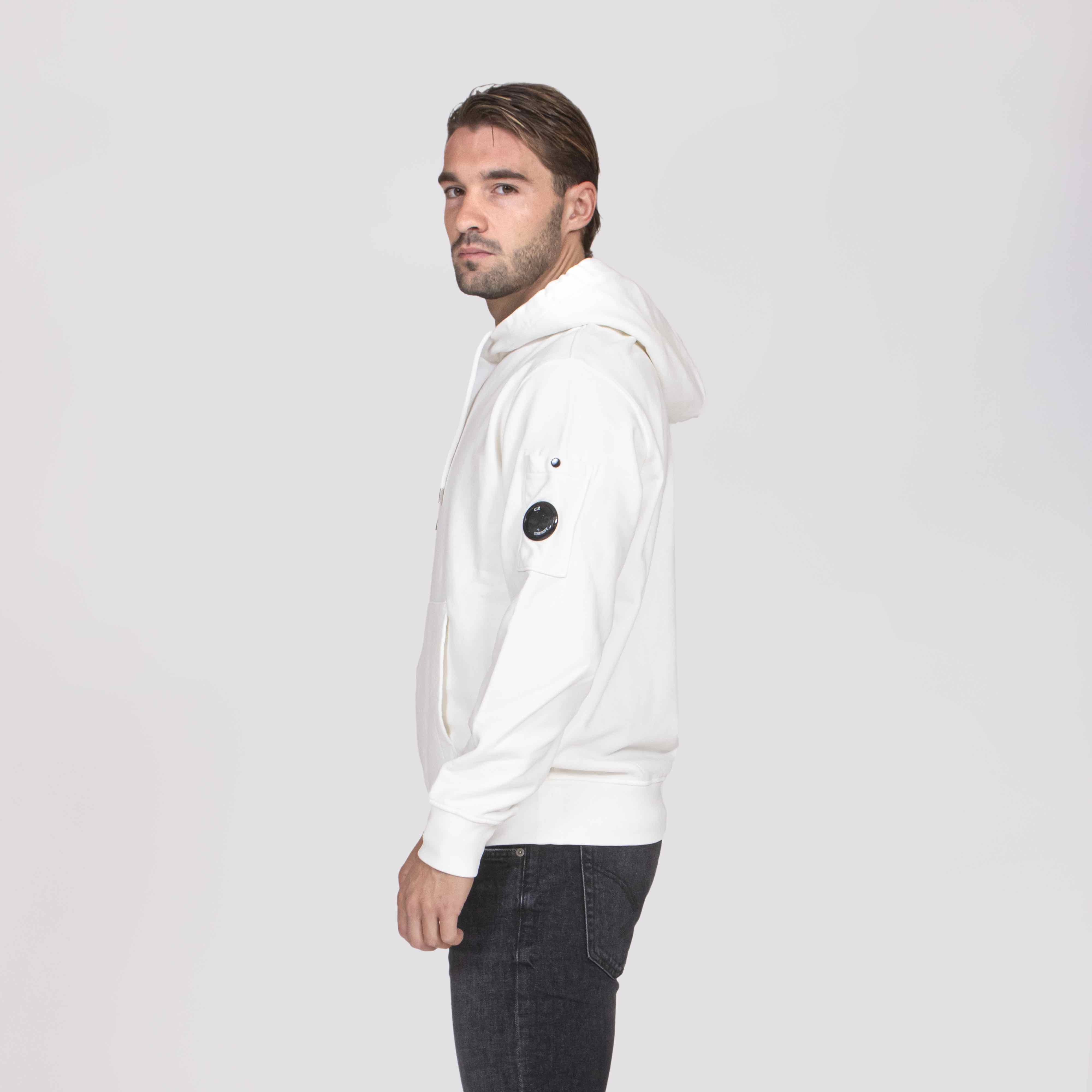 C.P. COMPANY BRUSHED AND EMERIZED DIAGONAL FLEECE HOODED SWEATSHIRT GAUZE WHITE