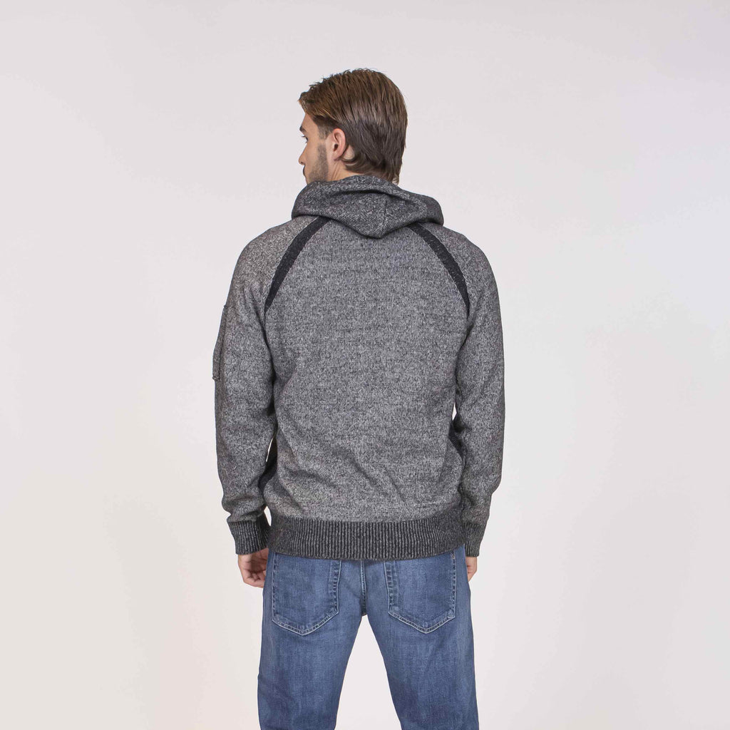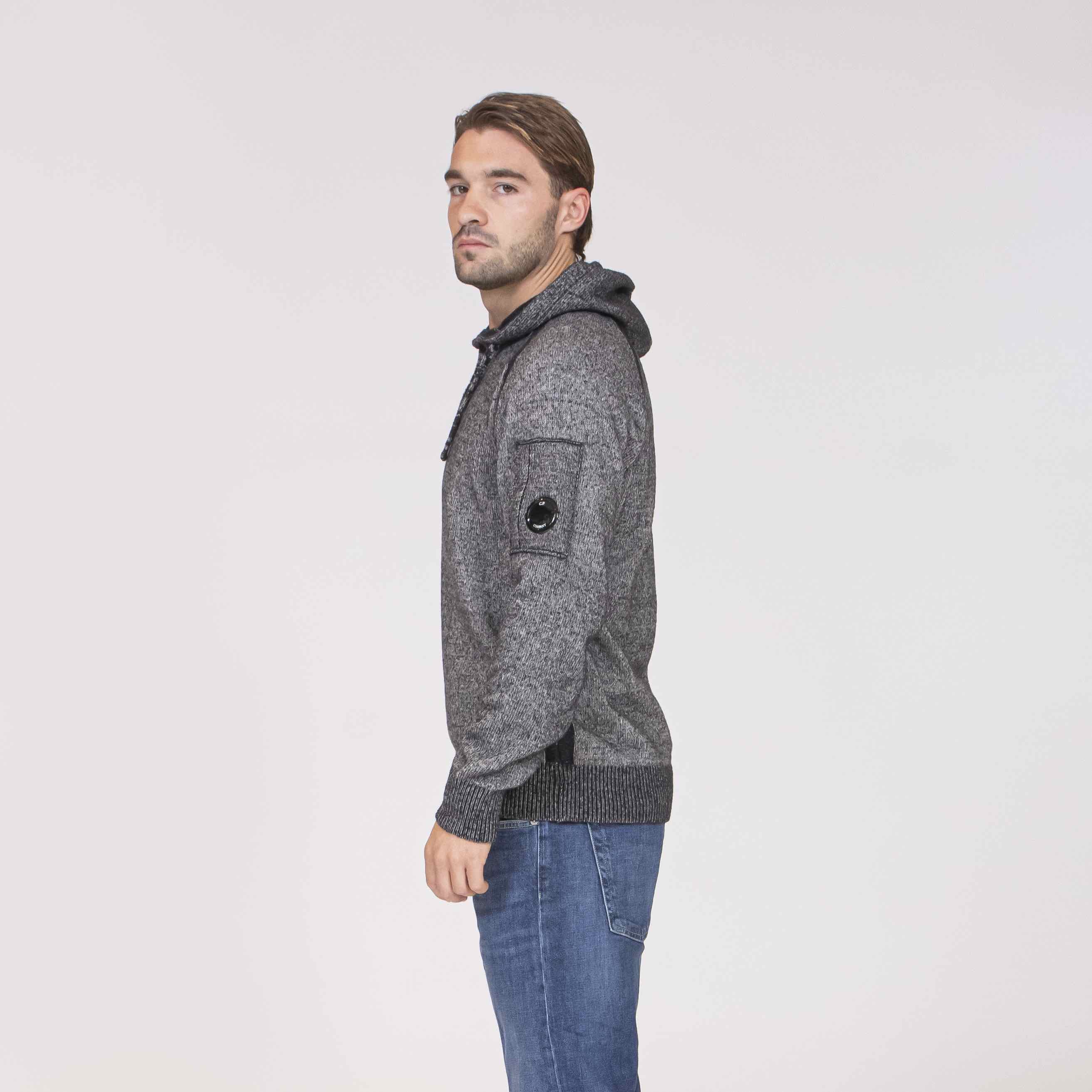 Maglione con cappuccio realizzata in lana vanisé con ciniglia poliestere a contrasto. Il modello presenta cappuccio regolabile, cuciture a contrasto e l’iconica Lente di C.P. Company. Rifinita con polsini e orlo a costine. Finezza 7. Regular fit.