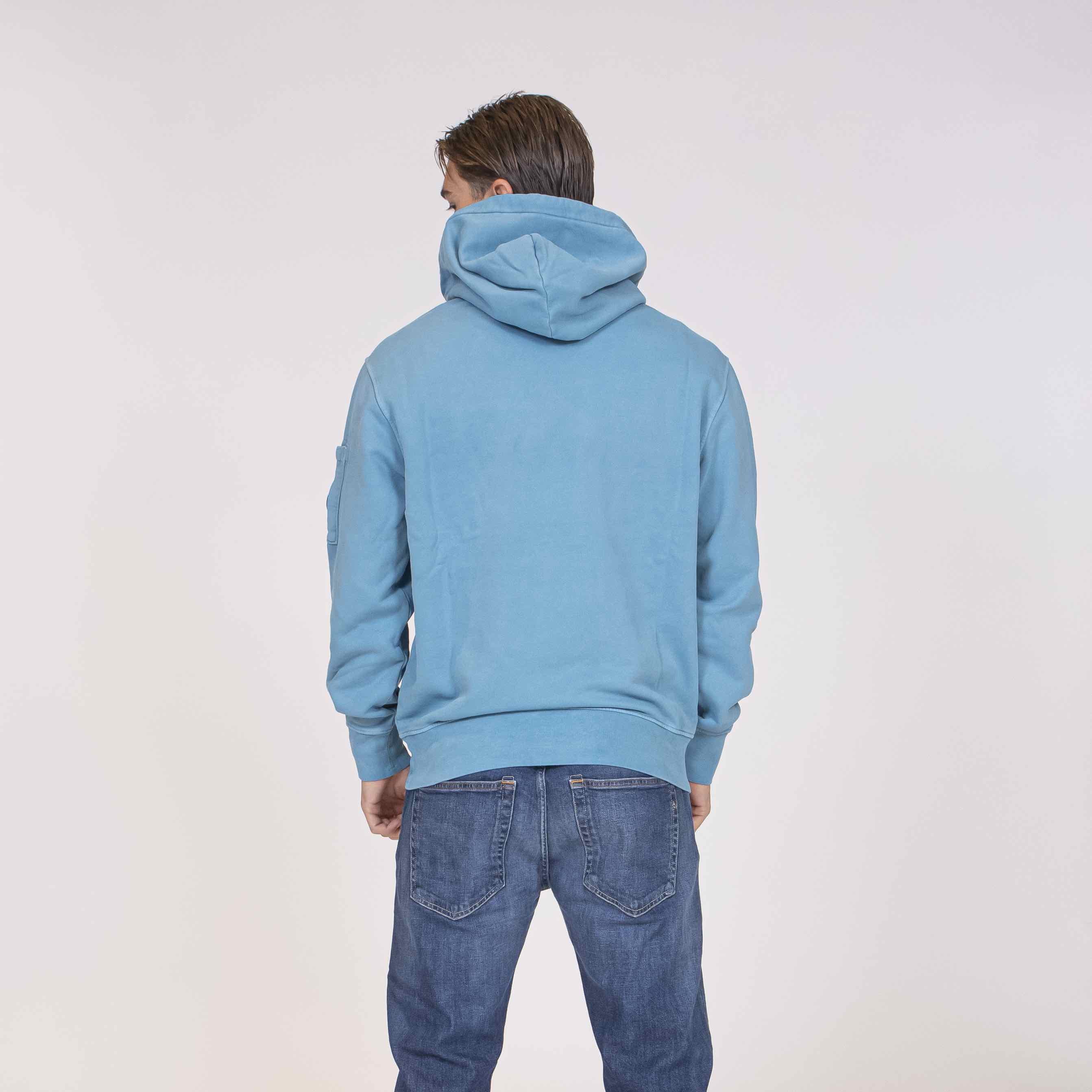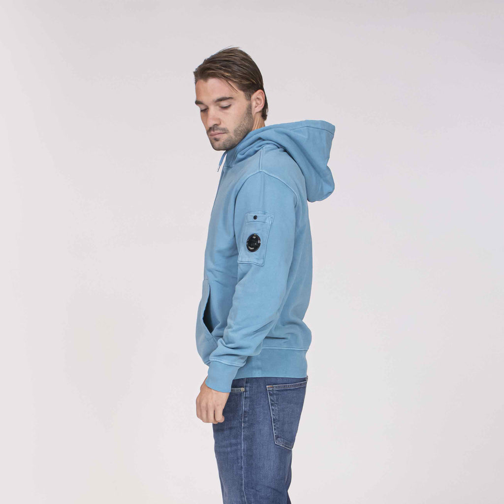 C.P. COMPANY BRUSHED AND EMERIZED DIAGONAL FLEECE HOODED SWEATSHIRT AEGEAN BLUE